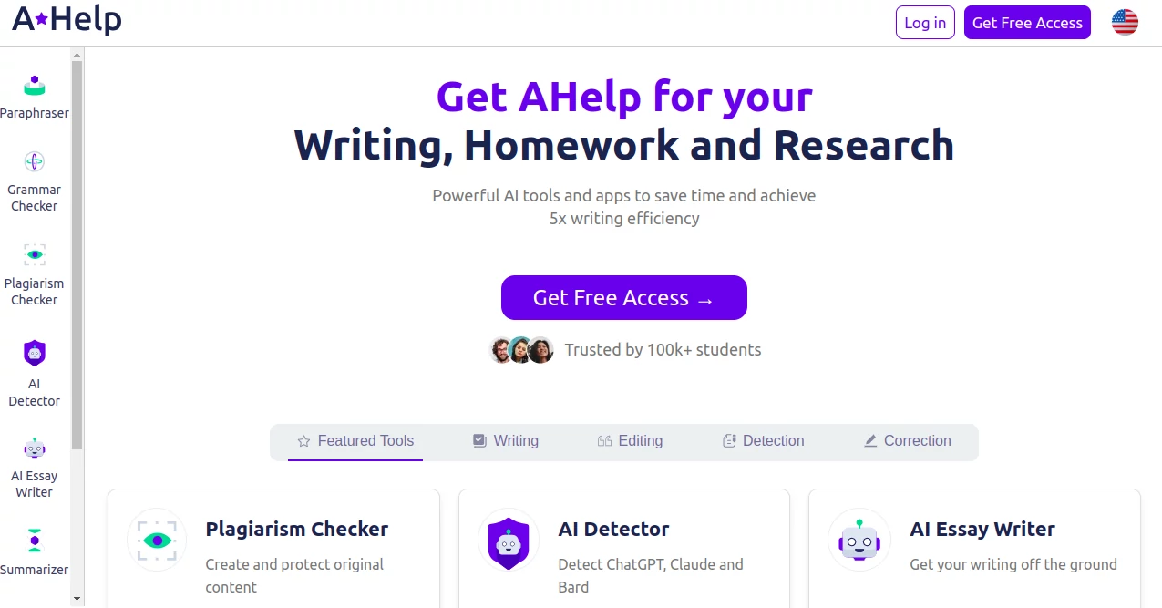 AHelp is a web based suite of AI powered writing and research tools designed to help users improve their writing and study workflows. The platform offers a variety of tools that assist with text creation, editing, and analysis.