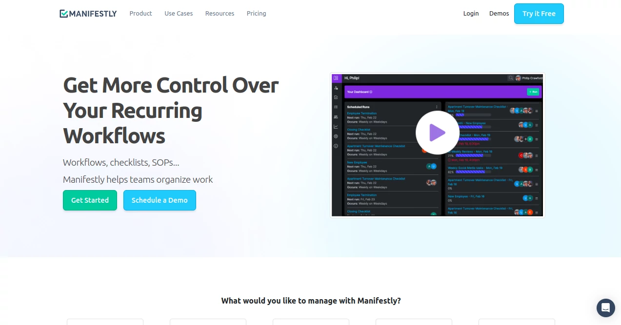Manifestly is useful for operations teams, project managers, and anyone who needs to standardize work and improve efficiency.