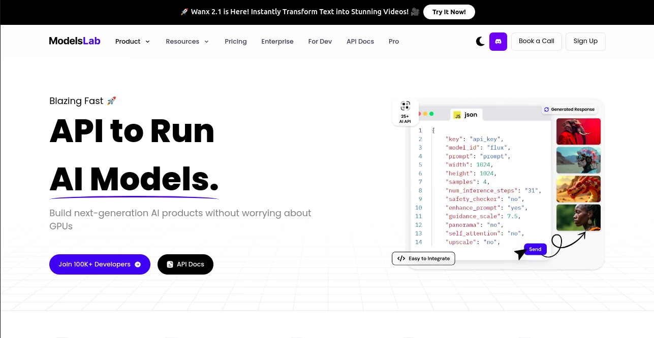Developers can use ModelsLab with SDKs for languages like Python, JavaScript, and PHP to build powerful AI powered features with simple API calls.