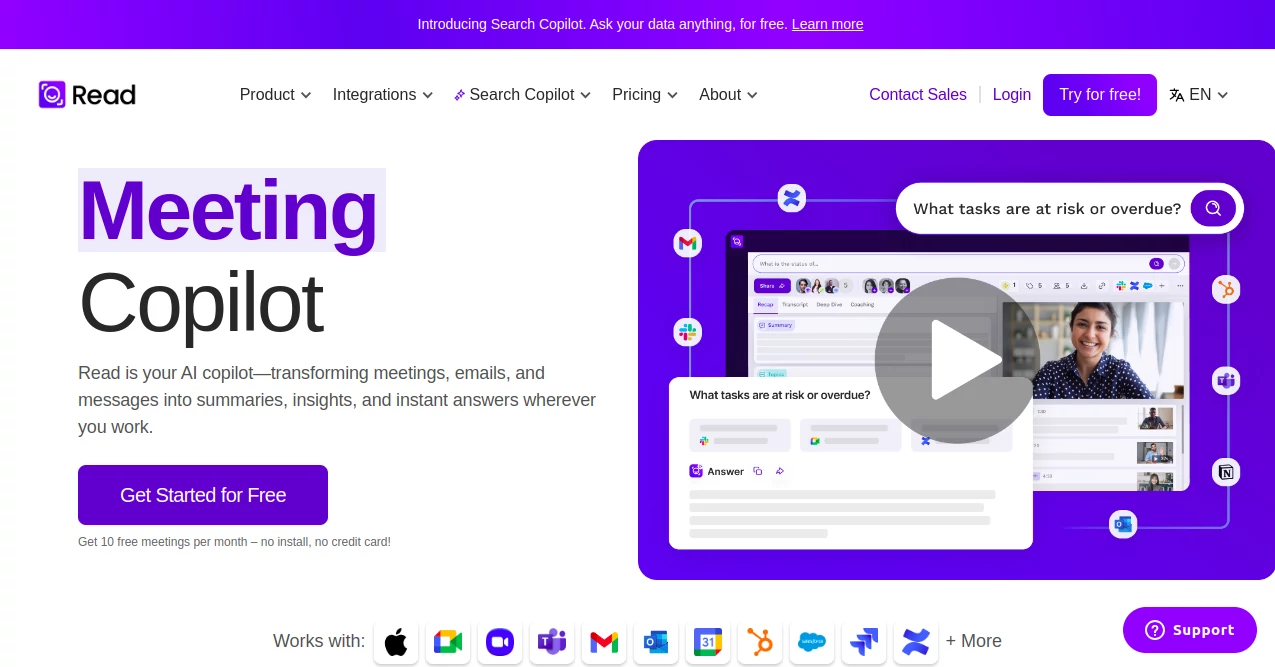 Read AI works through a web browser or desktop app and does not require local software installation to start capturing meeting content.