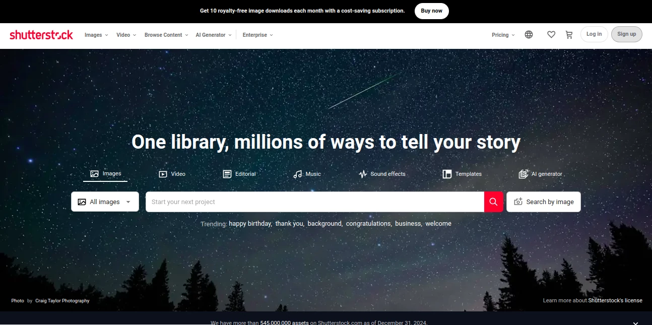 Shutterstock also offers design tools that help users create custom visuals using templates and editing features.