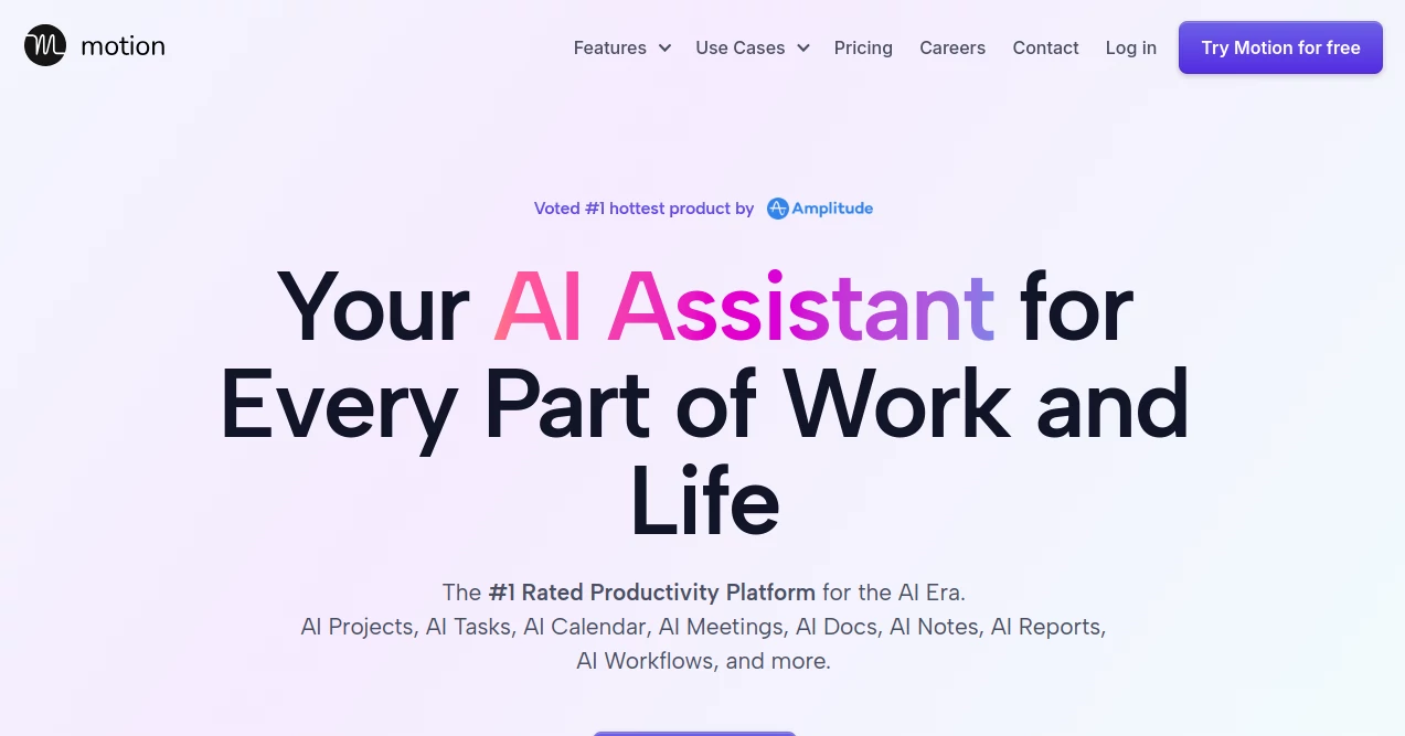 Motion is a productivity and task management platform that uses artificial intelligence to help users plan, schedule, and complete work more efficiently.